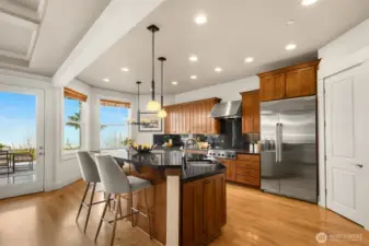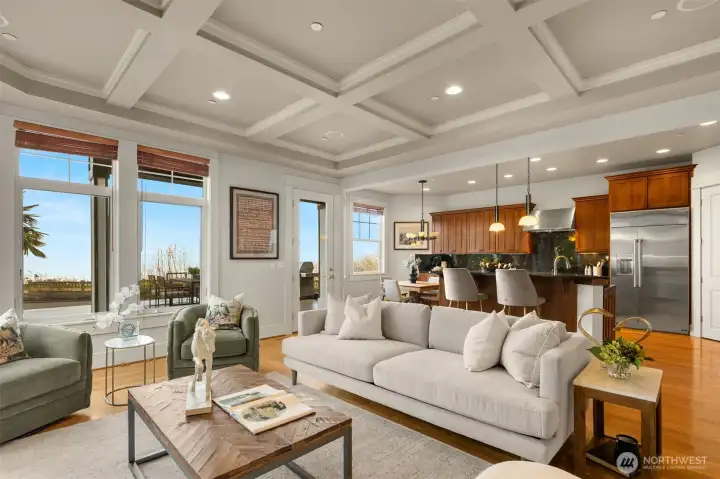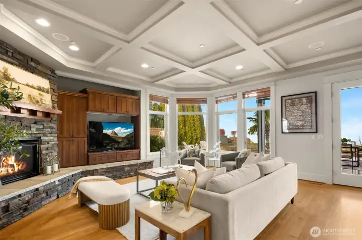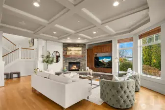 Exquisite lake, city, and territorial views define this custom-built home by award-winning architect Jeffrey Deroulet. Designed for both everyday living and grand entertaining, the home features an entertainment-sized kitchen with slab granite counters, double ovens, and a spacious center island. The family room showcases box-beam ceilings and panoramic views, while the formal dining room offers elegant finish work throughout. The luxurious primary suite is a true retreat with a fireplace and private view deck. Spa-inspired bath includes a sauna tub, double shower with steam and sitting benches, and an oversized walk-in closet. Additional spaces include a bonus room and formal den with built-ins. Expansive yard and a three-car wide garage complete this exceptional property.