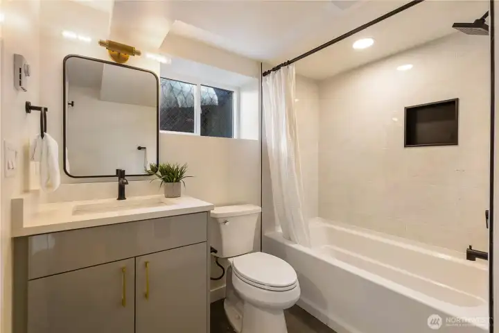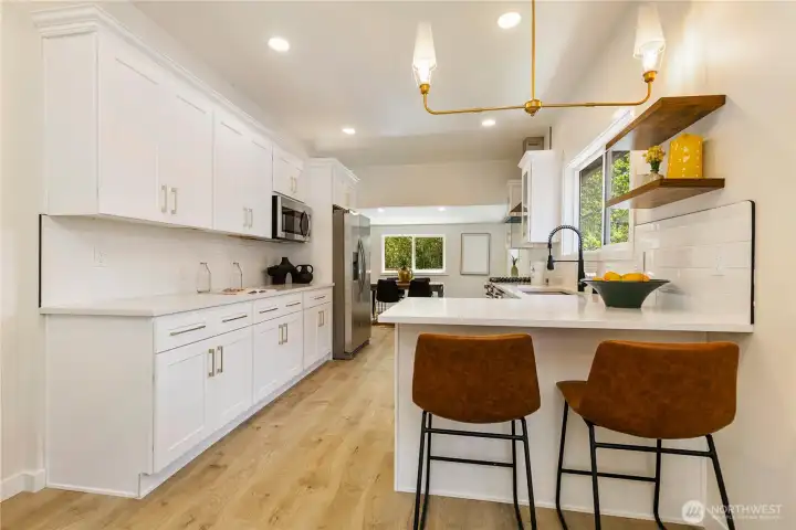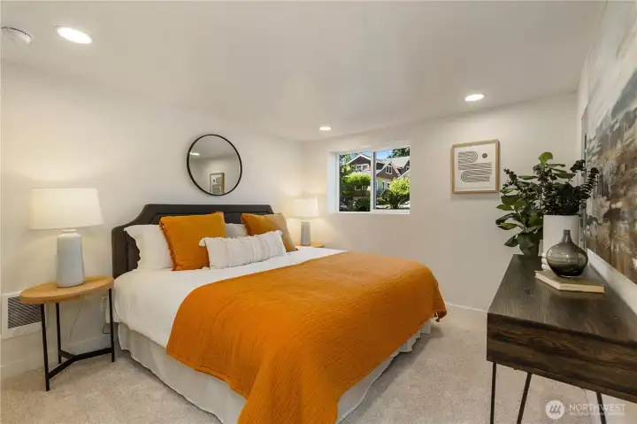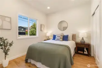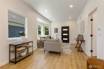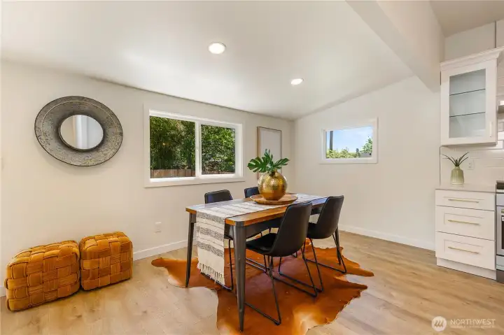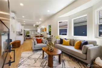 Essentially new construction with a fully permitted remodel in vibrant Columbia City! Step into tall ceilings and an open-concept layout featuring new windows, roof, siding, and more. Enjoy sleek new bathrooms and a modern kitchen with stainless steel appliances incl gas 6 burner stove. Main level offers a primary suite with ensuite, second bedroom, and full bath. Lower level includes a spacious family room, two more bedrooms, full bath, and wet bar—perfect for entertaining. Energy-efficient with all-new insulation and earthquake-ready with completed seismic upgrades. Outdoor patio access from dining area. Prime location near shops, dining & transit!