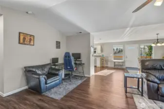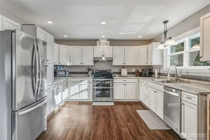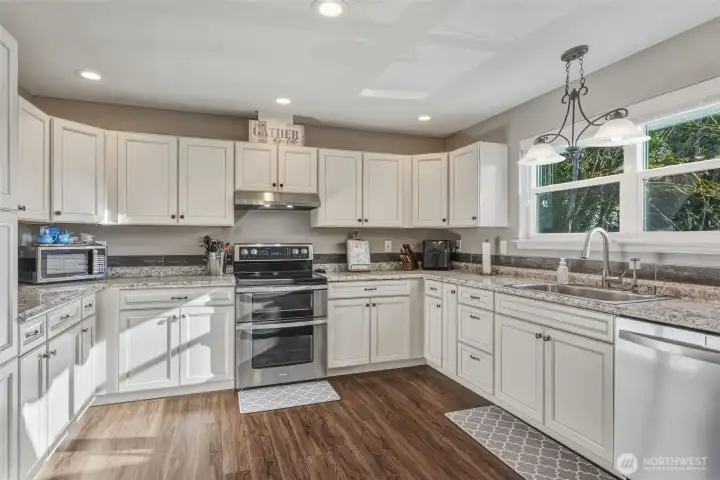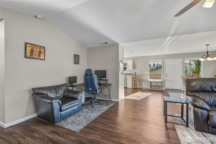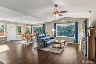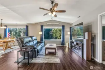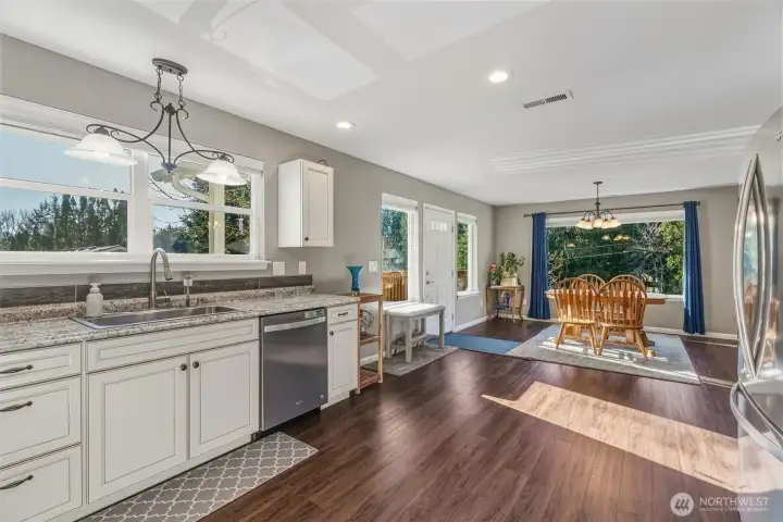 One of the newest homes in this established neighborhood, this inviting single-level custom build offers a bright, open layout with three bedrooms and 1.75 bathrooms, including extra-wide doorways. The kitchen, dining, and living spaces connect effortlessly, creating an ideal setup for gatherings and everyday living. Expansive windows frame a serene, wooded backdrop, giving the home a tucked-away feel while still being just minutes from schools and shopping. Outside, enjoy a low-maintenance yard with terraced landscaping, French drains, and additional gravel parking near the garage and street. The garage features a ductless heat pump, hot and cold water hookups, and the home includes a whole-house water filtration system. A perfect balance of comfort, function, and convenience—don’t miss this one!