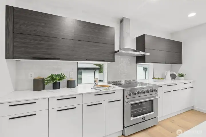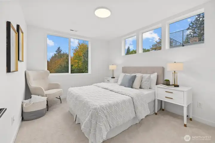 Flooded with natural light and custom touches throughout, this architectural masterpiece pairs contemporary aesthetics with meticulous craftsmanship at every turn. The spacious, open concept living area creates a seamless flow that is centered around a luxurious fireplace. The gourmet chef’s kitchen is a true showstopper, featuring premium stainless-steel appliances, an elegant quartz waterfall island, and custom cabinetry - all complemented by a convenient butler’s pantry for abundant storage. Retreat to the decadent primary suite, a serene sanctuary boasting a large walk-in closet with custom built-ins and a spa-inspired bathroom complete with a freestanding soaking tub, dual vanities, and designer tile. A versatile lower level bonus room is ready for the homeowner’s imagination. An expansive rooftop deck offers a private outdoor oasis with sweeping treetop views. Set along a quiet, tree-lined street, this home offers easy access to North Seattle’s top dining, shopping, and everyday conveniences just minutes away.