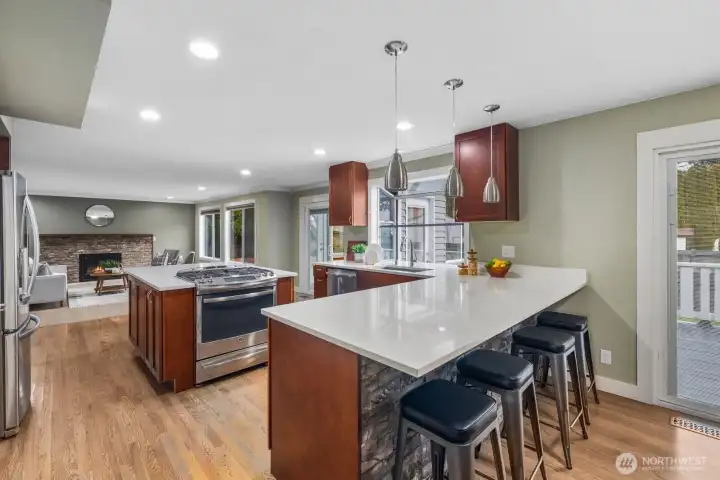 One-of-a-kind residence in Hearthstone where luxury meets smart design. This 4-bedroom plus bonus, 2.5-bath home features a lifetime Presidential roof, seamless gutters, and an app-controlled security system. Inside, the open-concept chef’s kitchen impresses with an oversized quartz island, upgraded cabinets with slide-outs, dual pantries, and under-counter lighting. The main floor boasts custom hardwood floors, crown molding, and a versatile 4th bedroom or den. Retreat to the primary suite featuring a private office, vaulted ceilings, and a spa-like bath with a deep-heated Jacuzzi tub. Entertaining is effortless in the cedar-lined sunroom with skylights or the finished garage, complete with cedar walls and a custom bar. The outdoor oasis features a private, fully fenced yard with maintenance-free astroturf and a 300 sq. ft. Trex deck. Enjoy the built-in Blackstone griddle and grill, retractable awning, and low-voltage lighting. Perfectly situated bordering natural preserves and walking trails, yet minutes from top schools and amenities. With fresh interior paint and two massive attached storage units, this home is as functional as it is stunning.