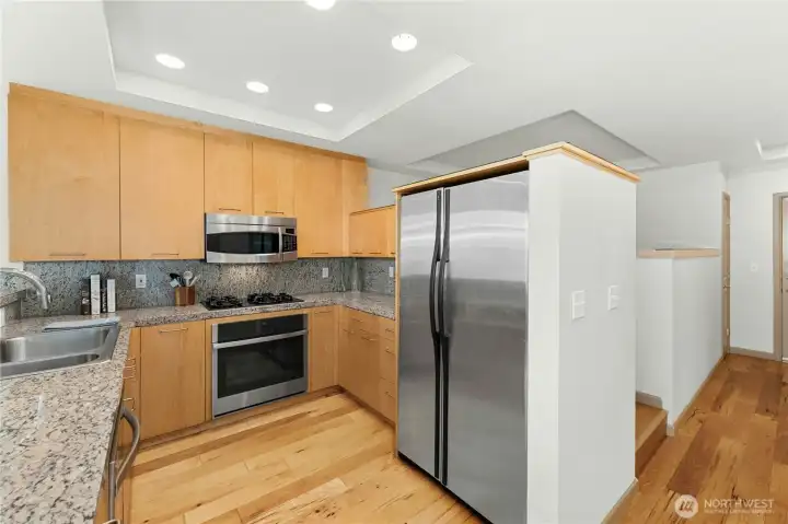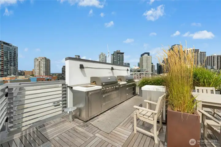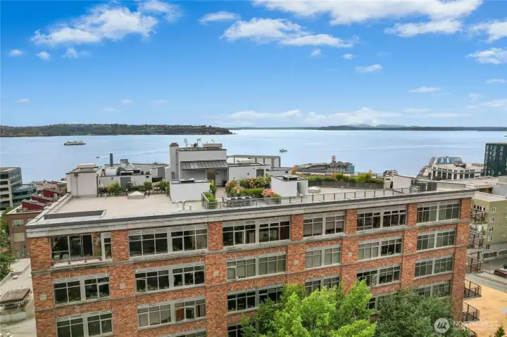 The Pomeroy is among the city’s coolest boutique buildings, with a secure entrance into a beautiful vestibule and lobby. As you enter you can't help but to notice the quality finishes and furnishings that have been curated to set the tone for the building; it is impressive to both guests and residents alike. Constructed of cement, steel and brick, this building was built to be both visually appealing, and to stand the test of time. It is just a short walk to the world-famous Pike Place Market, the waterfront, and the many restaurants, shops, and attractions that Belltown is famous for. This home is located on the 5th floor with an easterly view of the city through a full wall of windows, allowing the natural light to fill the space. The floorplan is smart and efficient with high ceilings, solid hard wood flooring, and a full-sized kitchen that doesn't skimp on features like granite counters, a gas cooktop, maple cabinetry, and a sprawling eating bar. The new (and paid for) rooftop deck is nothing short of spectacular with its 360-degree views of the city, sound, Olympics, and Mt. Rainier. There is no wonder it was voted Seattle's Best Roof Top Deck. Imagine barbequing, entertaining, or just hanging out with a glass of wine enjoying the view. The owners at the Pomeroy enjoy the lowest HOA dues per sq ft in the city; full disclosure resale certificate is available immediately for review. A secured one car deeded parking space is included, with a large adjacent storage room.