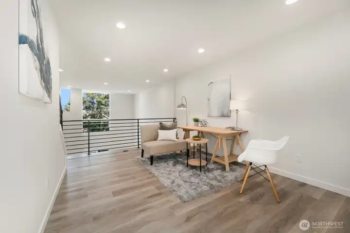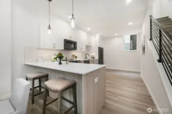 Thoughtful design meets calm, residential living in the Elm community by GreenCity, with just two homes remaining in Southeast Magnolia. The light-filled main living area features soaring ceilings, a mezzanine overlook, and a modern kitchen with matte grey Bosch appliances and refined cabinetry. The primary suite offers vaulted ceilings, a private balcony, and a spa-inspired bath. Two additional bedrooms provide flexible space for guests, work, or everyday living. Enjoy a private rooftop deck, assigned off-street parking, and a quiet setting with convenient access to Ballard, Queen Anne, and downtown Seattle. Note: Interior pictures are of model home.