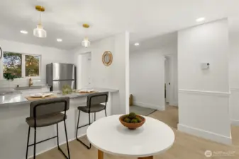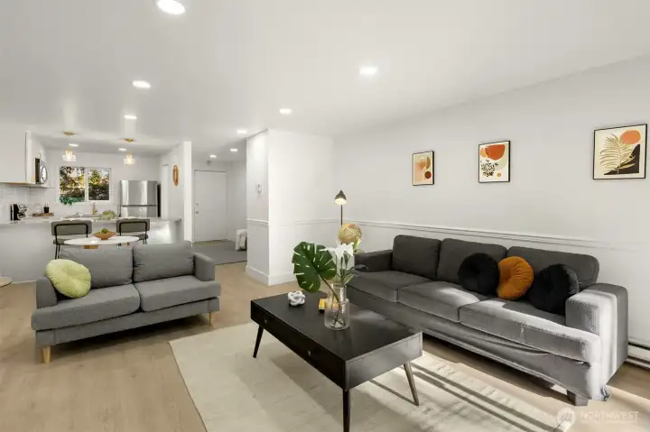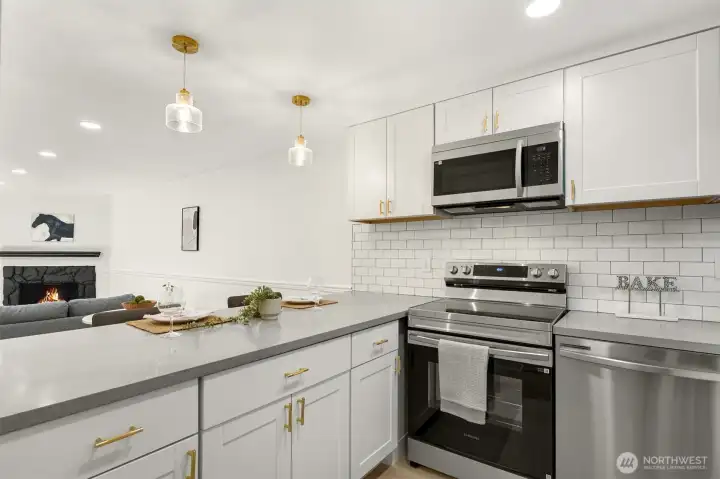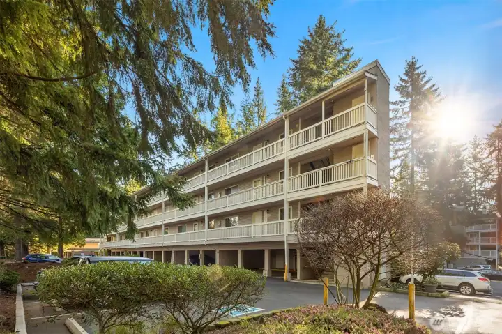 Tucked away in a quiet, beautifully maintained community, this spacious 2-bedroom, 2-bath condo is a true retreat. Thoughtfully and meticulously remodeled, the home features stunning new tile work, designer vanities, and elegant stone finishes—every detail carefully chosen to create a warm, refined atmosphere. The brand-new kitchen offers sleek stainless-steel appliances, granite-style counters, a welcoming bar area, and soft accent lighting, perfect for relaxed mornings or easy entertaining. New luxury flooring, modern paint tones, and bright, inviting lighting enhance the sense of comfort throughout. Enjoy the ease of elevator access and the peace of mind that comes with a well-run, attentive, and upkept HOA. Located just a short walk from the Microsoft campus and moments from Overlake, golf, transit, and major routes. No rental cap, no special assessments, EV-charging capability, separate storage, and friendly neighbors complete this hidden gem.
