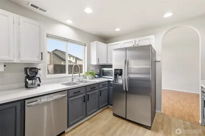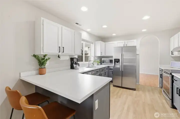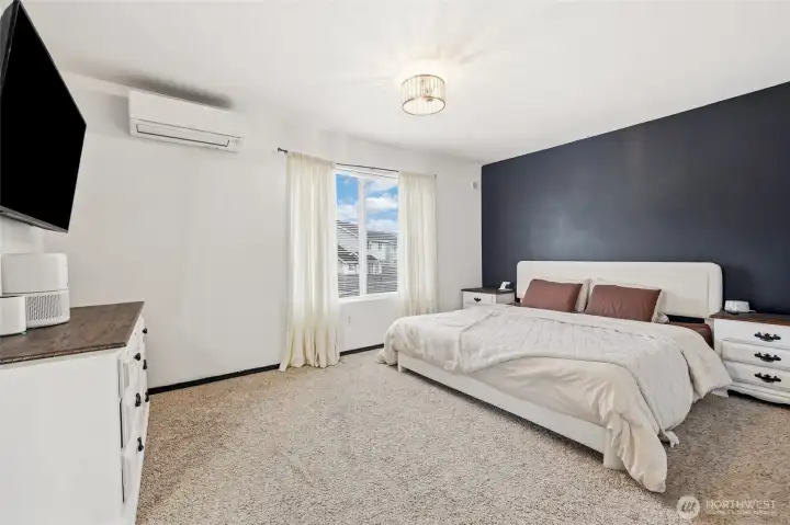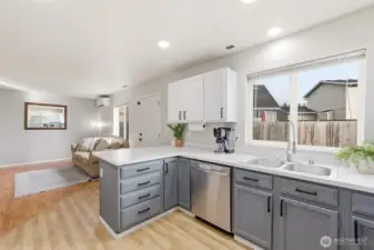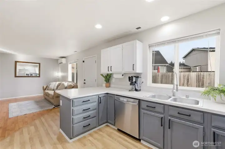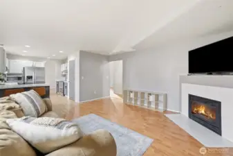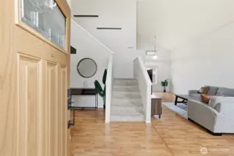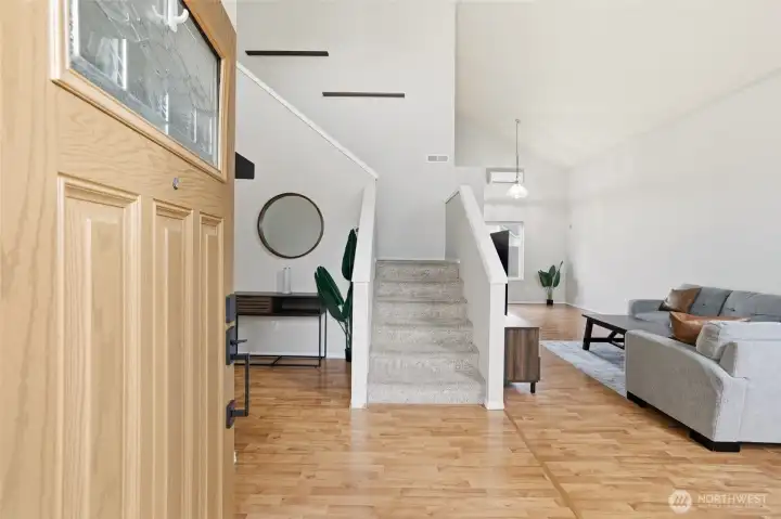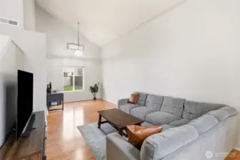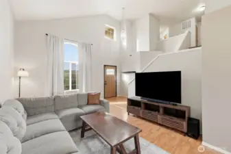 Fresh modern updates and soaring vaulted ceilings welcome you to this gorgeous 4-bedroom, 2.75-bath home set on the largest lot in Prairie Vista. Extra-large bedrooms including one on the main level next to a three-quarter bath, ideal for guests, a home office, or multi-generational living. The spacious primary suite features a walk-in closet and a five-piece bath, creating a private retreat. Enjoy two entertaining spaces on the main level, including a cozy fireplace perfect for gathering. Five mini-splits provide efficient year-round comfort, while an EV charger and ample parking offer space for an RV, boat, or additional vehicles. Best of all, there is no HOA. Conveniently located just minutes from everything Yelm has to offer.