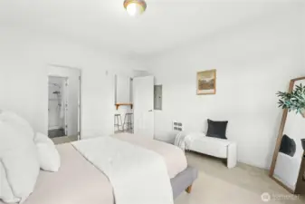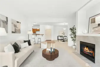 Welcome to Makenna Place! A well-managed boutique building with just 22 residences. Bright and inviting open living and dining area features a cozy fireplace and flows seamlessly to a private balcony, perfect for morning coffee or evening relaxation. The spacious primary suite offers a true retreat with a beautifully renovated bathroom featuring heated floors and modern finishes, an exceptional upgrade rarely found at this price point. Secondary bedroom provides flexible space for guests, home office, or maybe a home gym. Secure, controlled-access garage with two dedicated parking spaces. Ideally located between two light rail stations, this home offers unbeatable access to downtown, making daily commuting and weekend outings effortless. Well cared for and move-in ready, with opportunity to personalize over time. A perfect blend of comfort, convenience, and long-term value in one of the area’s most desirable transit-friendly locations.