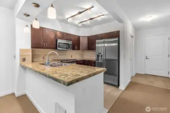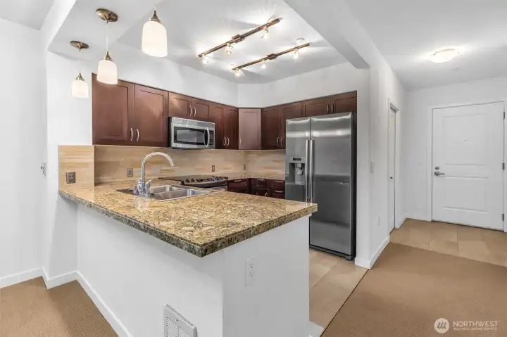 Live your best life in this stylish one bedroom residence with a smart open layout, cozy fireplace, huge windows, and your own private balcony. Fresh paint, newer carpet, cozy fireplace & in-unit washer/dryer. The sleek kitchen shines with granite countertops and newer stainless appliances. Walk-in closet, & extra storage. Everything you need, nothing you don't. You'll love the resort-style perks: concierge, gym, sauna, hot tub, BBQs, and a chill clubhouse for hanging with friends. Pet-friendly and no rental cap (min 90-day lease) = total flexibility. Just steps to top-rated coffee, bars, eats, shops, the Sunday Farmers Market, Golden Gardens, and all the Ballard essentials. Secure garage parking included. Welcome home!