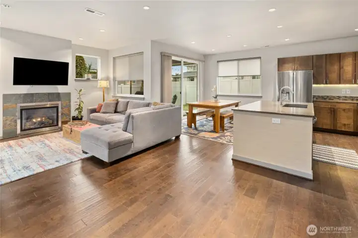 Experience modern luxury in the highly desirable Kestrel Point neighborhood. This 4-bedroom, 2.75-bathroom home makes a striking impression with its sleek stucco exterior and private, gated courtyard featuring a gas-powered fire table. The heart of the home is an expansive open-concept living area where a gas fireplace and oversized slider doors create a seamless connection to the outdoors. The gourmet kitchen is fully equipped with quartz countertops, stainless steel appliances, a large island with seating, and a spacious pantry.The primary suite serves as a true retreat, featuring double doors and an en suite with a soaking tub, a beautifully tiled shower, and a walk-in closet. The thoughtful layout includes an upper-level bonus room perfect for a home office or flex space, alongside two guest bedrooms joined by a Jack & Jill bathroom. A separate lower-level wing offers a private fourth guest bedroom and a 3/4 bathroom. Outside, the fully fenced backyard is designed for low-maintenance enjoyment with vinyl fencing, underground sprinklers, and a lit covered patio. Modern essentials like an on-demand hot water heater and a 2-car garage with epoxy floors and extra storage complete this turn key property.