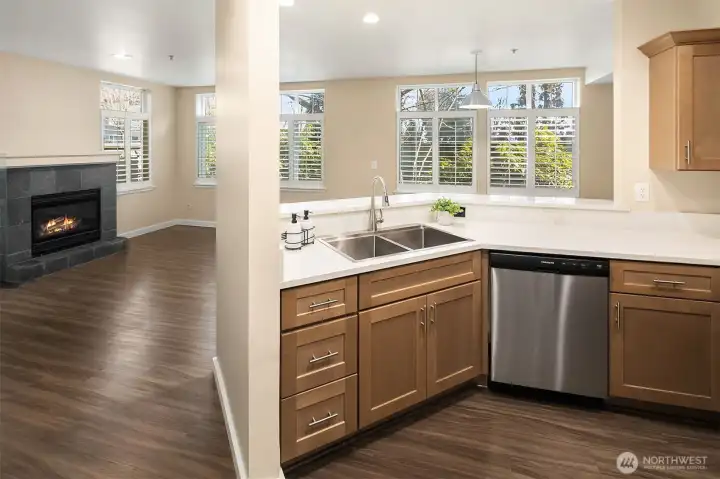 Pristine Lower Queen Anne condo with exceptional access to transit and city amenities. Enjoy walking distance to Seattle Center, Climate Pledge Arena, Lake Union Park via the pedestrian bridge, and convenient access to Hwy 99, I-5, the Burke-Gilman Trail, and major tech employers. This sunny, 1-bedroom corner unit lives larger thanks to an open floor plan with a dedicated dining & living area. Completely updated with newer LVP flooring, fresh interior paint including doors and trim, new stainless steel appliances, new wall heaters, and newer cabinetry. Beautiful plantation shutters, private patio with exterior access, secured common garage, and storage unit. Truly move-in ready—show and sell.