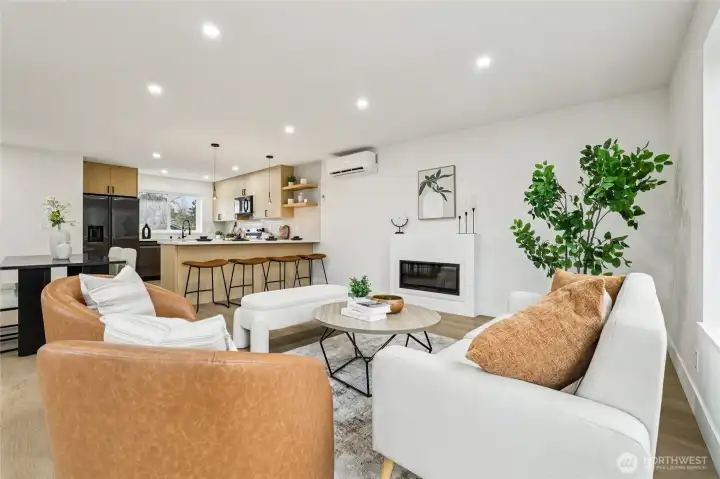 Beautiful NEW-CONSTRUCTION center townhome offering modern elegance and exceptional livability. The open layout showcases abundant natural light, refined finishes, and a gourmet kitchen with black stainless steel appliances and a spacious island with bar-stool seating. Three bedrooms and three full baths, including two en-suites, provide comfort and flexibility for guests or work-from-home needs. Energy-efficient split-unit heating and cooling ensure year-round comfort. Enjoy the expansive rooftop deck with peaceful lake views—perfect for relaxing or entertaining. Convenient one-car garage and easy access to transit, parks, and everyday amenities make this home an outstanding blend of style, location, and value. (Pictures of Unit A)