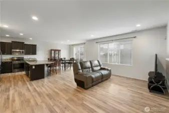 From the moment you arrive, you feel the privacy and calm this beautifully tucked-away five-bedroom home offers. Walking through the gracious entry, you’re welcomed into an inviting, thoughtfully designed space where a warm gas fireplace creates the perfect backdrop for everyday comfort and memorable gatherings. The gourmet kitchen quickly becomes the heart of the home, featuring a generous island ideal for hosting, casual meals, and connection.One of the most valuable features is the main-floor bedroom with a ¾ bath—perfect for guests, multigenerational living, or a quiet home office filled with natural light. It’s the kind of flexibility that adapts effortlessly to your lifestyle, both now and in the future.Step outside to enjoy a serene, low-maintenance backyard designed for easy living and peaceful moments outdoors. Upstairs, you retreat to four additional spacious bedrooms, including a relaxing primary suite. A large bonus room offers endless possibilities—movie nights, entertaining, a playroom, or creative space—making this home as functional as it is inviting.Here, privacy, space, and thoughtful design come together to create a home that truly lives well.