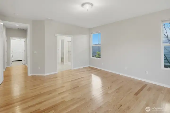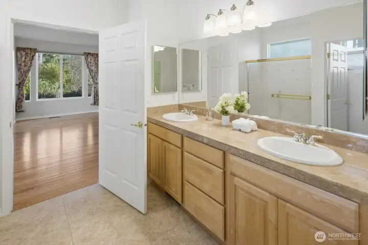 Trilogy Redmond! Prime location just minutes from the clubhouse and shopping center, this pristine Vancouver model sits on a rare double-sided greenbelt lot. Designed for entertaining, the home features a spacious great room as the heart of the layout, complemented by separate formal living and dining areas. Hardwood floors run through the main living spaces, while soaring ceilings and expansive windows fill the home with natural light and showcase stunning forest views. The generous kitchen offers maple cabinetry with convenient pull-out storage. The primary suite includes a spa-inspired bath and walk-in closet, with a guest bedroom and full bath nearby. A large office provides flexible workspace. Enjoy the private, nature-surrounded patio—ideal for relaxing or hosting friends. New water heater. 55+ community.
