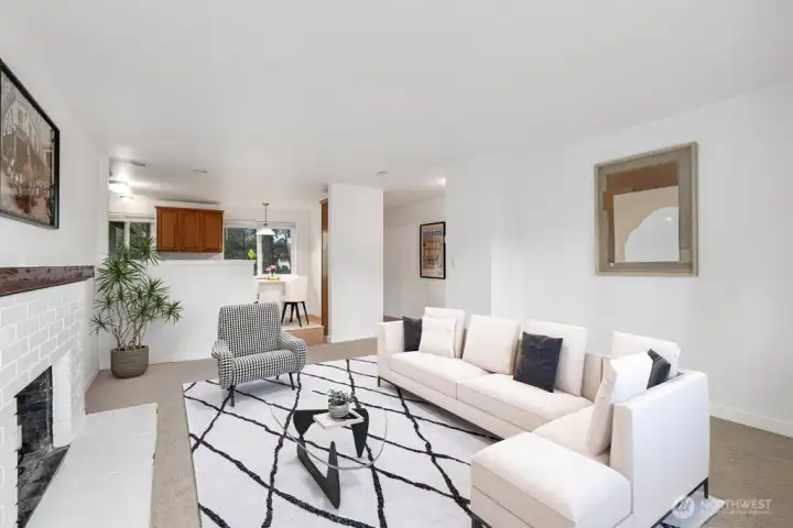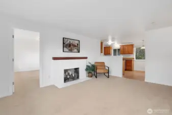 Welcome to this charming 3-bedroom, 1.75-bath home in desirable Steilacoom, offering a warm and comfortable layout. Fresh paint and brand-new carpet throughout create a clean, move-in-ready feel from the moment you enter. The spacious living room features a cozy wood-burning fireplace, creating an inviting spot to relax or gather. The kitchen includes stainless steel appliances and convenient access to the laundry room, making everyday routines easy. The generously sized primary suite is thoughtfully set apart, featuring an en-suite bath and a walk-in closet for added comfort. Two additional bedrooms and a full bath are located on the opposite side of the home, providing a balanced and functional layout. Step outside to enjoy the patio and partially fenced yard, ideal for outdoor dining or quiet moments. An attached garage adds everyday convenience. Situated across from Cherrydale Park and close to JBLM, schools, and local amenities, this home offers a wonderful blend of comfort and location. No HOA!