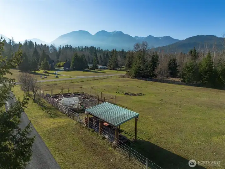Experience the ultimate equestrian lifestyle on this stunning 7+ acre mountain view estate. Flooded with natural light, this custom home features gleaming hardwoods and a seamless open-concept kitchen. The main-floor primary suite offers a private retreat with dual closets and a spa-like soaking tub. Additional room to use as an office on main level. Upstairs, find 2 spacious bedrooms, a full bath, and a versatile bonus room. The grounds are a rider’s dream, boasting an outdoor arena, two fenced pastures, and a 1,224 sq. ft. four-stall barn with a tack room and mud-free paddock. Beyond the stables, enjoy a fenced orchard, lush garden beds, a greenhouse, and dedicated water connections. This property perfectly blends luxury living with high-end agricultural utility.