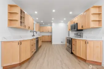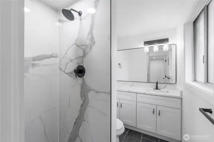 Beautifully updated 4-bedroom, 2.5-bath home with a versatile and open floor plan designed for modern living. Step inside to designer finishes throughout and an inviting main living space featuring a cozy wood-burning fireplace. The updated kitchen offers an abundance of cabinetry, NEW quartz countertops, and stainless-steel appliances—perfect for everyday living and entertaining. Upstairs features three spacious bedrooms and two full bathrooms, including a private primary suite with an updated bath showcasing a custom tiled walk-in shower, tiled floors, and quartz vanity. The lower level provides an additional gathering or entertainment space with a second wood-burning fireplace, plus a fourth bedroom and bathroom—ideal for guests, a home office, or multi-generational living. Recent interior updates include new flooring throughout, fresh interior paint, updated millwork, doors, fixtures, lighting, and fully remodeled bathrooms. Step outside to a large back deck overlooking a fully fenced backyard, perfect for hosting and relaxing. Conveniently located near shopping, dining, entertainment, and with easy freeway access.