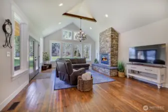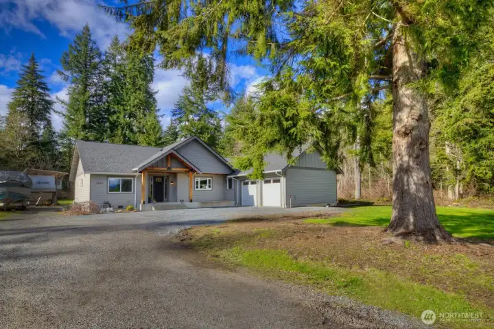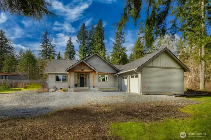 Experience refined single -level living in this Custom Built 3 bedroom, 2-bath Craftsman rambler, ideally set on a level acre with breathtaking mountain views. Spanning approximately 2,000 square feet, the home features a thoughtfully designed open-concept layout and vaulted ceiling that blends sophistication with everyday comfort. The gourmet kitchen is a true centerpiece, featuring high-end Kitchen Aid SS appliances, Shaker cabinetry, quartz countertops and walk in pantry, blending style and functionality. Montana milled Fir hardwood throughout the main living areas is anchored by a stunning stone wood fireplace. Fireplace has electric start and temperature control with fan. The spacious primary suite is a private retreat, complete with a luxurious 5-piece spa-inspired freestanding soaking tub, over-sized walk-in closet and large walk-in shower with faux marble tile. Refined finishes throughout adds elegance and practicality. Expansive living spaces are bathed in natural light throughout the entire house. The generous landscaped yard provides endless possibilities for curated gardens and entertaining. The outdoor covered area off the kitchen and family room provides the perfect place for outdoor gatherings in any season. Located in highly desirable area this exceptional property offers privacy, beauty, and an exceptional place to call home.