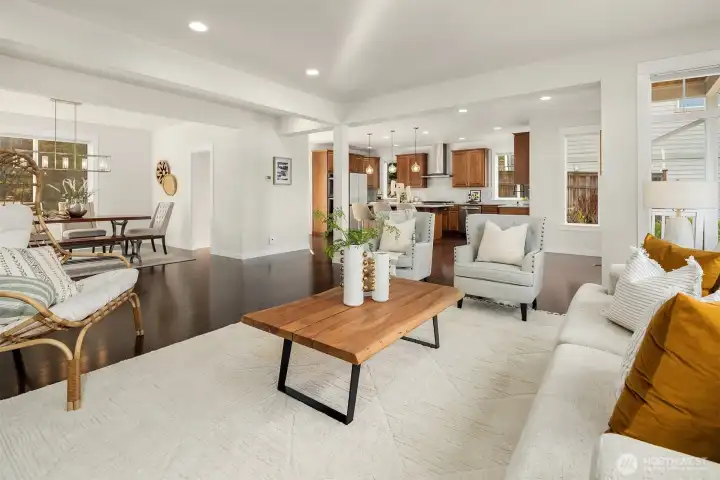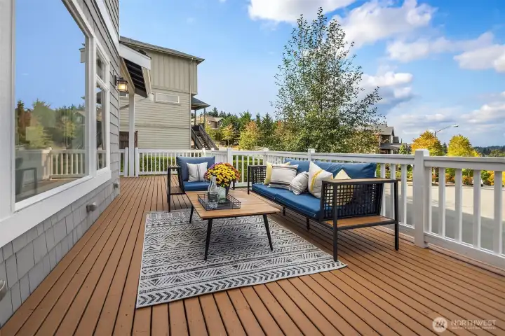 Welcome to this stunning 4-bedroom, 3.25-bath, 4,000 sq ft home in sought-after South Bothell. Built in 2014 and meticulously maintained, this residence offers a spacious open floor plan filled with natural light and sweeping views. The main level features a gourmet kitchen and seamless flow to the living and dining areas, perfect for entertaining. Step onto the newly updated oversized deck to enjoy year-round outdoor living. The level backyard is a private retreat with a serene water feature, mature landscaping, and plenty of usable space. Tucked in a private, friendly community, this home is close to Totem Lake Village, vibrant Bothell Downtown, and offers easy I-405 access—ideal for modern living.