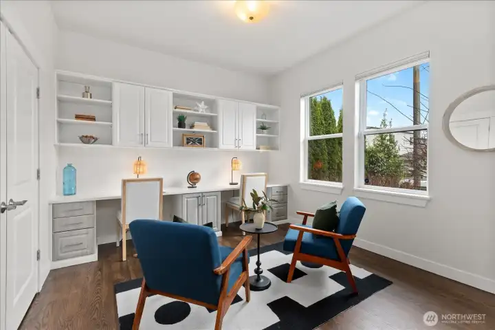 Behind a fully fenced front yard, a clean-lined walkway leads to a covered porch, creating a welcoming entry near the heart of The Junction. Built in 2014 and meticulously maintained, this classic craftsman features a recently painted exterior and a bright, open living concept with newly refinished hardwood floors & chef’s kitchen is ready for hosting with SS appliances, slab granite, and a wine fridge. Settle in for movie nights by the gas FP, complemented by thoughtful built-in storage and glass-front display cabinetry for games, media, and favorite keepsakes. Kitchen, dining, and living spaces connect naturally to a private patio and a fenced backyard fully redone with turf and fresh landscaping for low-maintenance outdoor enjoyment. A main-floor office is dialed in with custom built-in desks and cabinetry, while upstairs offers a spacious primary bedroom with a large ensuite bath & walk-in-closet + guest bathroom that’s been fully remodeled. Custom closets in every bedroom, a Murphy bed with custom cabinetry in an upstairs room, and abundant storage throughout make everyday life feel effortless. Enjoy EV-charger ready convenience, a 2-car garage with overhead storage + a long driveway & ample street parking for guests. Head down the street to Ercolini Park, then spend weekends chasing sunsets at Alki Beach, grabbing coffee and dinner along California Ave, or escaping into Lincoln Park and Schmitz Preserve Park trails. Life in West Seattle is just special!