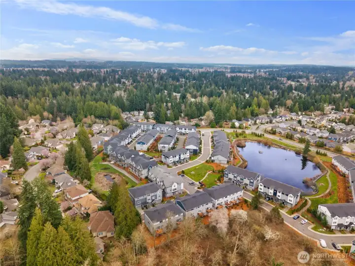 Zoned for Woodside Elementary (rated 9) and Henry M. Jackson High School (rated 9), this home sits on a PREMIUM CORNER LOT W/PRIVACY in one of the most desirable pockets of the community—set on a quiet dead-end street with three-side open views and exceptional natural light with no neighboring building obstructions. Take in serene pond views from the deck and balcony, and enjoy an indoor dining area that keeps the outlook wide open with no visual blockers. Comfort and convenience shine through thoughtful upgrades, including ceiling fans in three bedrooms, custom designer closets in the primary suite and one guest bedroom, and an insulated garage finished with premium epoxy-coated flooring. Both the primary bath and an additional full bath feature bidet systems, with a heated seat in the primary for an extra touch of everyday luxury. Just minutes to Mill Creek Town Center for shopping, dining, and coffee, plus quick access to essentials like Safeway and Fred Meyer. Nearby parks and trail options—including the North Creek Trail—make it easy to step outside and recharge. PRE-INSPECTED!!