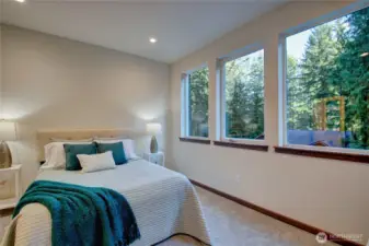 Brand new home located on a private cul-de-sac in the lakeside & golf course community of Sudden Valley. The property borders the edge of the Sudden Valley community - and lies adjacent to County owned forest land (and the Lookout Mtn. trail). Enjoy an amazing great room with vaulted ceiling over the kitchen, living & dining areas. Rear access to a private deck and back yard area as well. The kitchen has white cabinet package, quartz counter-tops, stainless steel appliances and pantry closet. The primary bedroom has ensuite full bath with separate shower and tub, and walk-in closet. The lower guest suite would also be considered a primary bedroom - with its own ensuite 3/4 bathroom. Extremely energy efficient ductless mini-split heating and cooling system. The Lookout Mountain Trail system is located right behind the property and the trailhead is located at the end of the street! Very nice neighborhood with several new homes located on the street - and more to come.