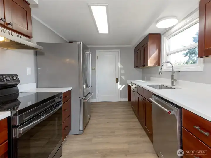 Rare opportunity to own cheaper than you can rent. Closing costs and down payment assistance may be available through grant programs. Contact the agent for details. Beautifully renovated 3-bedroom, 1-bath residence located in the sought-after Shumway neighborhood. This home showcases hardwood flooring throughout the main living areas, fresh interior and exterior paint, and a tastefully updated bathroom featuring modern fixtures and new LVP flooring. The kitchen has been thoughtfully upgraded with new quartz countertops, high-end appliances, and durable LVP flooring, offering both elegance and everyday functionality. A newer roof provides added confidence for years to come. The exterior features a fully fenced, attractively landscaped yard, a covered porch ideal for entertaining or quiet relaxation, an oversized detached garage, and convenient alley access with additional parking. Enjoy a walkable lifestyle with nearby shops and restaurants, all just minutes from downtown Vancouver. This move-in-ready home blends timeless character with contemporary updates in an exceptional location.