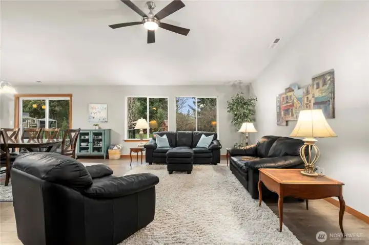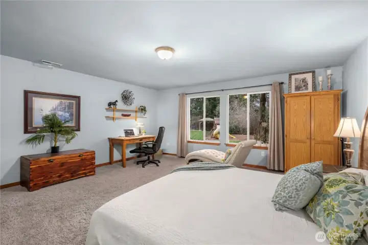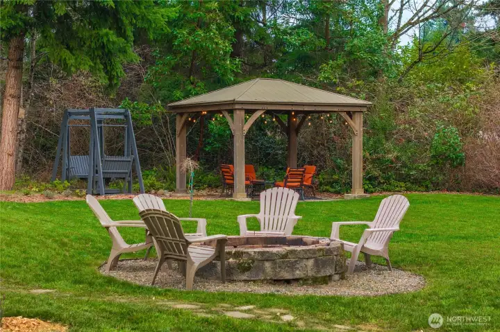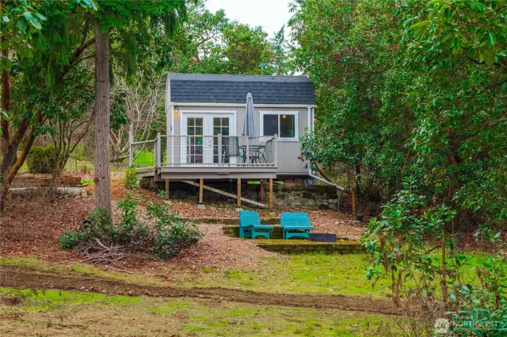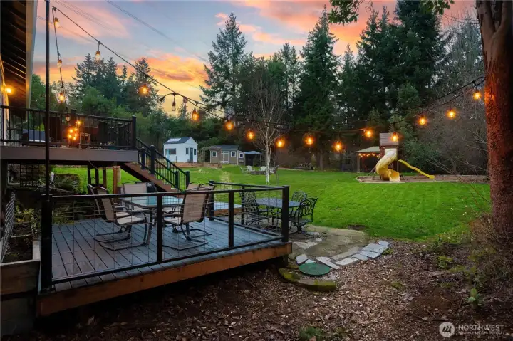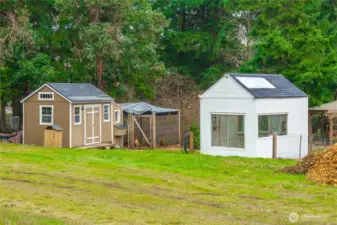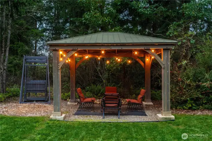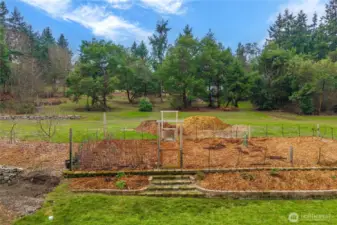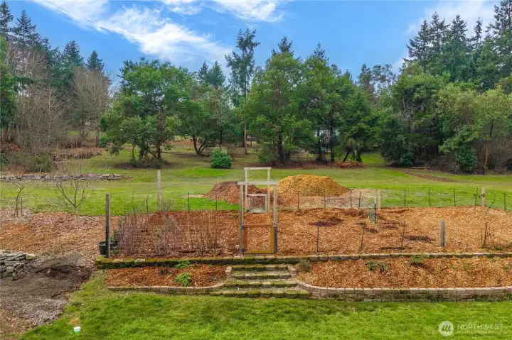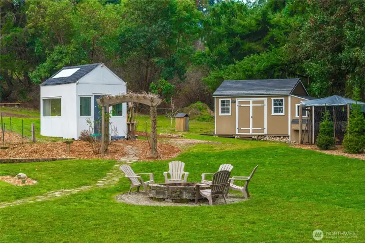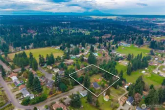 A rare opportunity to own a thoughtfully designed 2018 rambler on 2.16 private acres featuring curated gardens, Mount Rainier views, and charming guest cottage—set on a quiet dead-end street. Enjoy peaceful mornings overlooking your garden estate, evenings under café lights, and weekends spent gardening, entertaining, or working in the shop. Walking paths, arbor, gazebo, rain garden, fire pits, two Trex decks, and multiple outdoor gathering areas create a setting that feels intentional, serene, and inspiring—perfect for gardeners, creatives, hobbyists, or anyone craving space to breathe. Inside, enjoy open one-level living with vaulted ceilings & LVP floors. Kitchen has granite counters, stainless appliances, large island w/ eating bar, walkin pantry. Spacious primary suite features garden views, walk-in closet, and 5-piece bath with soaking tub & shower. Additional highlights include heat pump for heating/cooling, hardwired internet, expansive standing-height crawlspace, power & water spikes near garden areas, garden & potting sheds, chicken coop, trailer/RV parking w/ RV plug & oversized garage w/extended workshop bay plumbed for air compression. Detached furnished guest cottage includes private deck, fire pit, kitchenette, loft sleeping space, heater, power & self-contained specialty toilet. Close to amenities and just minutes from I5 & 167 for easy commute. Puyallup Schools. Modern comfort. Garden estate living. Space to create, host & unwind on your own private acreage.