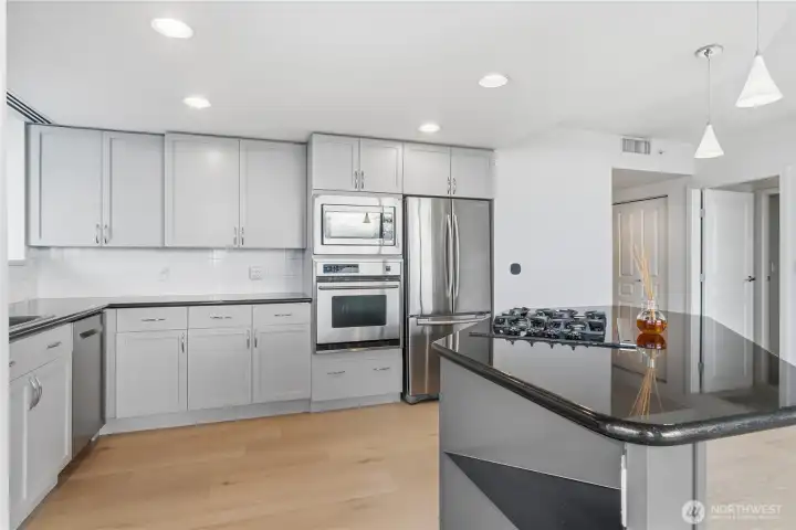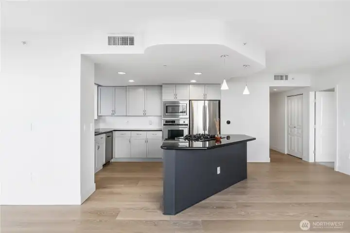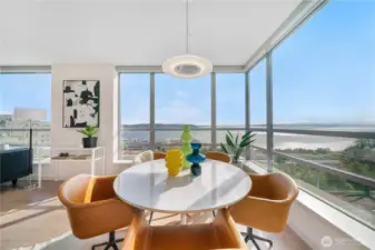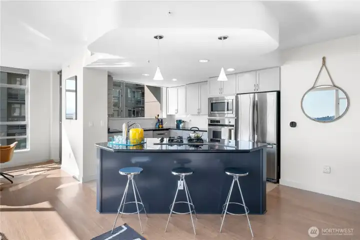Perched above the Elliott Bay, this stunning corner unit 2-bedroom condo offers expansive windows with unobstructed views of Puget Sound and the Olympics, blending urban convenience with golden sunsets over the water. Thoughtfully designed with an open layout, and private balcony: perfect for both relaxing and entertaining. Smart home controls of blinds and heating with central AC. Enjoy living in a quite part of Belltown with easy access to top-tier restaurants, vibrant nightlife, and the waterfront, all just outside Concords front door. The building is pet friendly to bring your fury friend, and luxury amenities abound. With a parking space and storage unit in private garage this condo delivers the ultimate Seattle living experiences.