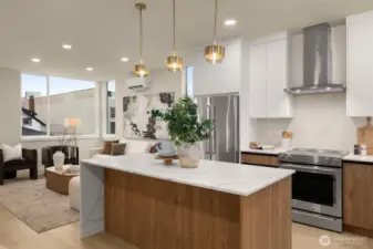 Incredible 4.75% financing for 10 years. Modern living meets thoughtful design in the brand-new Sawyer community by GreenCity, with only three homes remaining, located near Green Lake and in the heart of Roosevelt. The light-filled main level features a gourmet kitchen with stunning quartz, premium appliances, and seamless flow to the living area. A lower-level bedroom with a stylish bath offers flexible use for guests, work, or a roommate. The upper-level primary suite includes vaulted ceilings and a spa-inspired bath. Enjoy territorial views from your private rooftop deck. EV-ready parking, energy-efficient systems, and close access to cafés, restaurants, transit, and shopping. Note: Interior pictures are of model home.