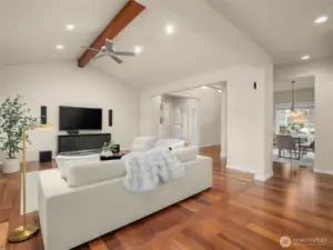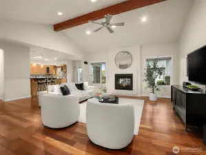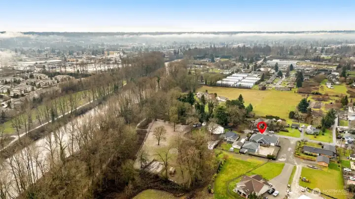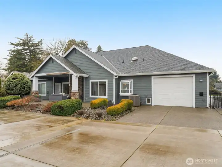 Custom build home with 2,227 sq ft rambler on 1.97 acres open floor plan overlooking kitchen, nook, living room and den. Living room with double sided gas fireplace to the covered patio. Vaulted ceilings, granite countertops. Primary w/on suite bath & walk in closet. Separate laundry room. Dining room with stunning rock wall. Oversize three car garage. A shop that is 2,000 sq ft with heated floors, an office, half bath, indoor/outdoor RV Parking. Wired for heavy equipment, air compressor w/stations throughout. Fully fenced backyard. Relax and enjoy the indoor sauna, easy walk to fishing on the river. Air Conditioning, No Home Owners Association, Centrally located to Sumner, Puyallup and all major freeways.