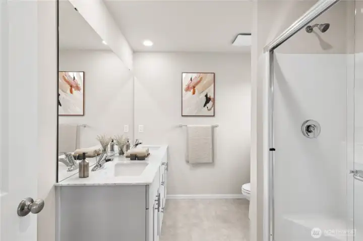 The Cypress at Bakerview by D.R. Horton lives large with its bright open main level, extended laminate hardwood throughout, and light painted cabinets. The kitchen is designed for entertaining with a large eating island, quartz counters, stainless appliances. Upstairs you will have an open loft for relaxing. Primary bedroom has double sinks, large walk-in closet. Home also boasts A/C, home automation package, 240Volt outlet for a car charger, plus a 1-2-10 year warranty! Bakerview is a stunning new home community featuring amenities such as pickleball courts, basketball court, playgrounds, picnic structures & tree lined sidewalks. Buyers must register your Broker on the first visit or open house.