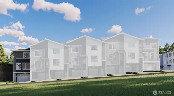 Welcome to Harmony Village, where modern design meets everyday comfort. This new construction exterior unit townhome, The Horizon model, offers 1819 sqft of comfortable living space with stylish finishes throughout. Natural light fills the home, enhanced by the privacy and additional windows of an exterior unit. The open-concept main level is anchored by a stunning kitchen showcasing quartz slab countertops, a statement tile backsplash, and stainless steel appliances. Home chefs will appreciate the gourmet hood vent and convenient pot-filler, adding both function and flair. Gorgeous laminate hardwood flooring flows seamlessly through the living areas, creating a warm and contemporary feel. Designed with efficiency in mind, the home is equipped with ductless mini-split systems for personalized climate control, complemented by supplemental electric wall heat. A high-efficiency heat pump water heater ensures energy savings without sacrificing performance. Well-appointed bedrooms and bathrooms provide comfortable retreats, while the intelligent layout maximizes usable square footage for modern living. Every detail reflects quality craftsmanship and low-maintenance living—perfect for today’s lifestyle. Builder is currently offering a 4.99% fixed interest rate at no cost to the buyer when financing through the builder’s preferred lender, making this an exceptional opportunity to own brand-new construction with long-term affordability. Enjoy the benefits of NEW!! WELCOME HOME!!