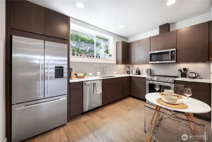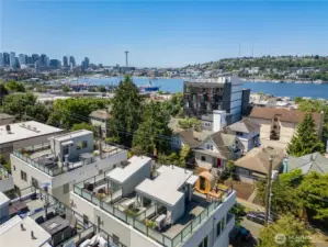Experience the pinnacle of urban luxury with this meticulously crafted corner-unit townhome in the heart of Seattle’s vibrant Eastlake neighborhood. Designed by award-winning Caron Architects and expertly executed by the renowned Murray Franklyn, this home is a masterpiece of top-tier craftsmanship and thoughtful design. The main level features an expansive, light-filled living area, dining space, and a contemporary kitchen, while the second level offers two generous-sized bedrooms and a stylish full bath. The upper level is dedicated to a luxurious primary suite complete with a private, expansive balcony. Your personal city sanctuary continues on the private rooftop terrace, where you can entertain guests while taking in sweeping views of Lake Union and the Seattle city skyline, or unwind in your very own private sauna hut. A true commuter's heaven, this property is just a quick stroll from major employer office buildings and offers easy access to I-5, all while being steps away from the Lake Union waterfront and Eastlake’s finest dining, shops, and bars.