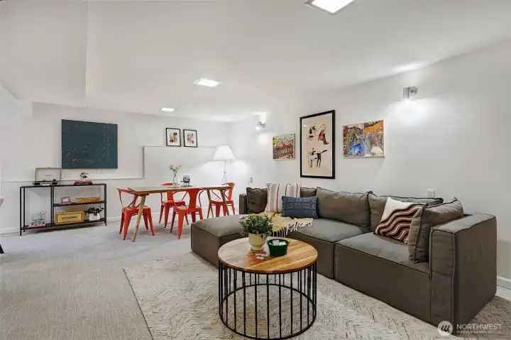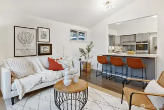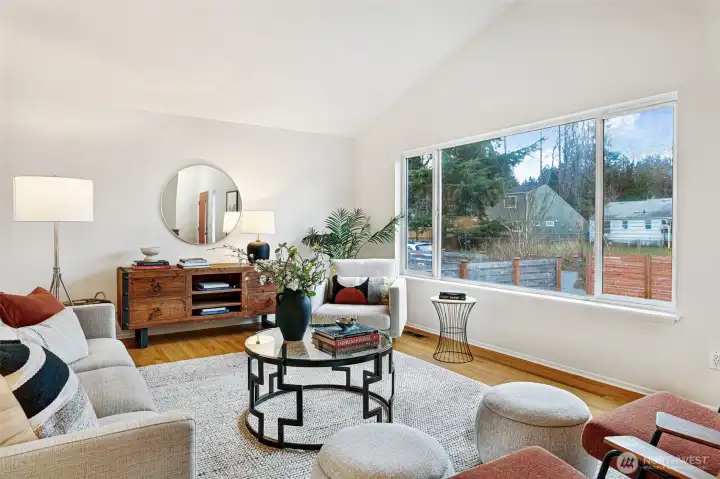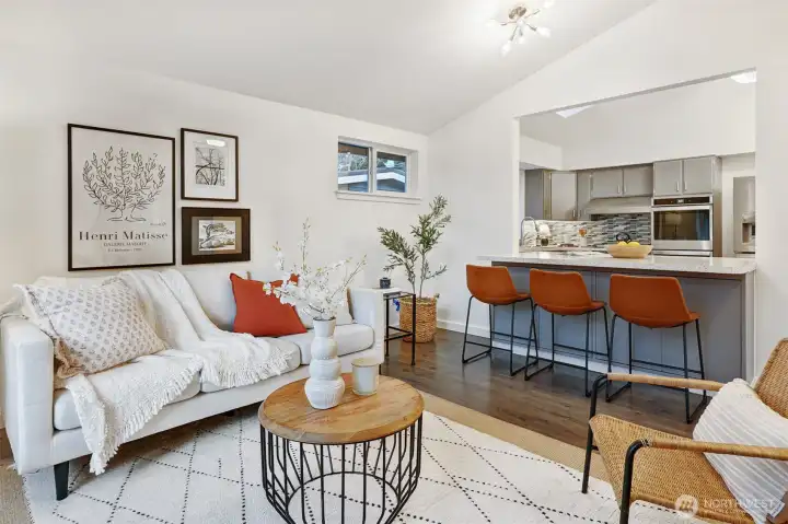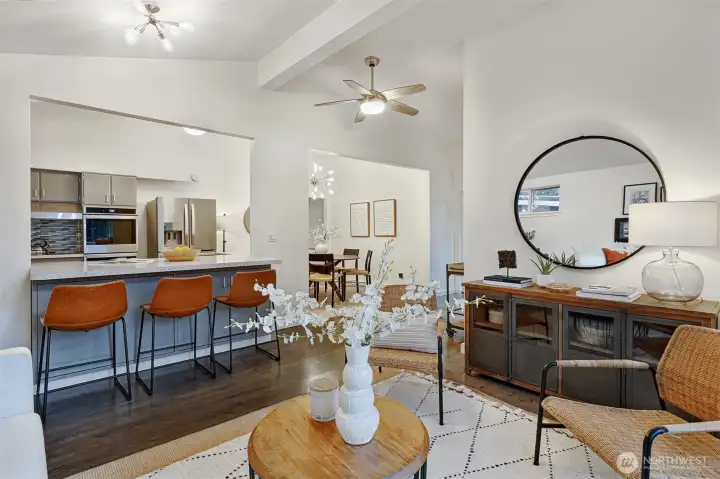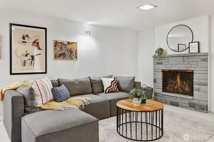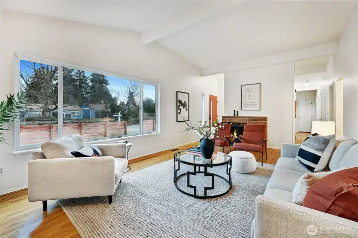 Original MCM vibes meet modern living in this stone-entry stunner. Vaulted ceilings, skylights, 2 fireplaces & a floor plan that actually works. 3 beds on the main, 2.25 baths include a true primary suite. The open kitchen connects the great room & dining with a legit walk-in pantry. Big windows flood the home in sunlight while the deck & fenced yard deliver party-ready hangs, pet freedom or quiet reset time in the covered spa. Downstairs = media room, Lego HQ & gym-ready flex space. Updated electrical & plumbing, solar, EV charging, AC & heat pump. Large lot on a quiet street, and attached garage for car, tools & toys. Perfectly placed between TWO light rail stations near parks, local hot spots & top Shoreline schools. Breezy commutes, and downtown is just minutes away. Seriously.