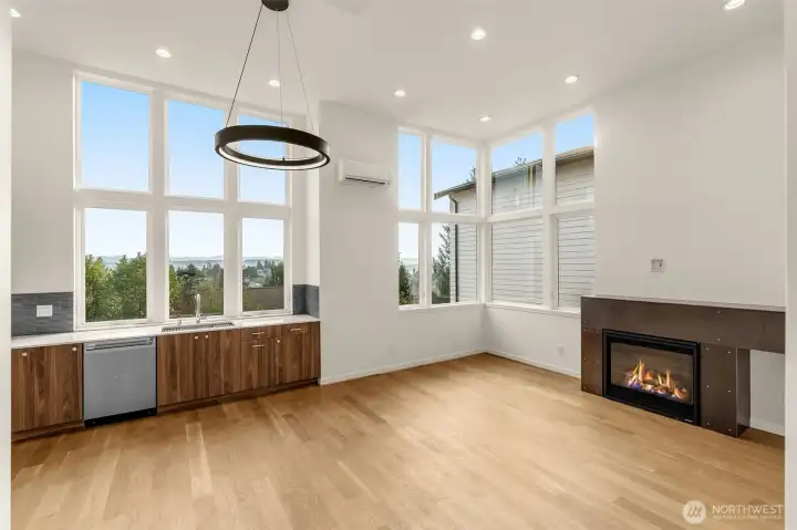 Rarely found, this contemporary 2-bedroom, 2.5-bath home offers an exceptional combination of modern design, expansive outdoor living, and views. Clean architectural lines, wide-plank hardwood floors, and oversized windows create a bright, open airy living. The main living area features a sleek fireplace and flows seamlessly into the kitchen, ideal for everyday living and entertaining. What truly sets this home apart is the generous covered outdoor living area, perfect for year-round enjoyment, along with a private rooftop deck showcasing breathtaking views of Mt Rainier and sweeping territorial views of the Cascades. Upper-level bedrooms provide comfort and privacy, while the attached one-car garage adds everyday convenience. A truly rare opportunity in this sought-after neighborhood. Storage
