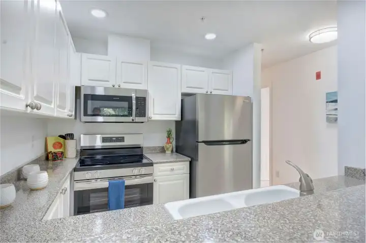 Long term seller has rehabbed entire unit after relocating to the sun! BEST VALUE in all of Beacon Hill! 12 units in boutique Crystal View Condo in quiet N. Beacon Hill! Updated 843 sq. ft. end unit has new refrig ,stove ,microwave, water heater, carpet, paint, lighting and carpet. Gas fireplace too! Light, Bright, serene 2 bedroom/2 bath w/ensuite primary facing ravine view balcony, walk in closet! Open floor-plan inclusive of living/dining/kitchen leading to second unit balcony. Sprinkler system, earthquake insurance, brand new re- piping. RARE 2 secure parking garage, basement storage too! Bus to DT Seattle, stadium and Capitol Hill. Freeway close by! Stellar rooftop deck w/Sound, DT Seattle, Stadium views. NO RENTAL CAP, 90% owner occupied. Multiple eateries nearby! Pet's ALLOWED! Seller to contribute 3% BUYER BONUS to apply where it will help most, toward closing costs, 2/1 interest buydown, purchase of new washer/dryer or whatever else benefits you most!