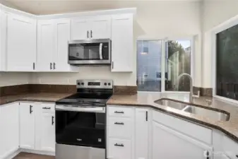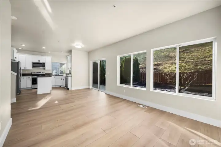 Discover the perfect blend of location, comfort, and convenience in this beautifully maintained end-unit home. The home features vaulted ceilings, new flooring and carpet, and fresh interior paint throughout, creating a bright and inviting open-concept layout. The modern kitchen flows seamlessly into the living area and features all-new stainless steel appliances and new upper cabinets, making it ideal for entertaining or everyday living. The backyard features mature fruit trees, offering a peaceful and private outdoor retreat—perfect for gardening, relaxing, and enjoying fresh homegrown fruit. Recent upgrades include newly installed crawlspace insulation with vapor barrier and a refreshed attic, improving energy efficiency and moisture control throughout the home. Enjoy an oversized 2-car garage and a large driveway for ample parking. This move-in-ready home is a must-see.
