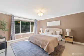 Welcome to this elegantly maintained home on Cedarwood Lane, situated on an oversized lot perfect for entertaining. Natural light floods this 4 bed, 2.5 bath home. Formal spaces flow to open kitchen w/SS appliances, 5-burner gas range & custom cabinets, family rm. Den, powder & mud rm on main. Built-in sound system, central AC. Large upper bonus room & master suite w/ his & hers closets, 5-piece bath w/spa tub, heated floor. Wrap around the newly painted deck w/3 large patio areas, gas fireplace & great yard, veg gardens, unbeaten privacy. 3 car garage, wired for generator, room for EV charging. Lake WA Schools!