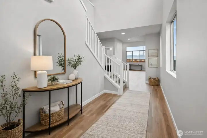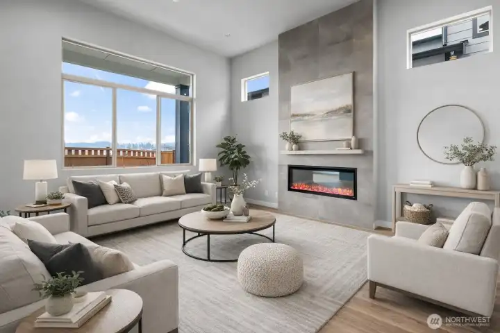 For a limited time, enjoy up to a $30,000 buyer bonus plus an appliance package! Welcome to the Junco Plan by Conner Homes - where sweeping Mt. Rainier views greet you at the door and extend throughout the main living areas. This thoughtfully designed 4-bedroom, 2.75-bath home offers a desirable main-level bedroom with a ¾ bath—ideal for guests, multi-generational living, or a private home office. Open-concept great room showcases soaring 12-foot ceilings, expansive windows framing the mountain & floor-to-ceiling tile linear electric fireplace. The kitchen features stainless steel appliances including a 5-burner gas range, quartz counters, full-height tile backsplash, under-cabinet lighting, and a spacious walk-in pantry. Upstairs, an oversized loft provides flexible space for recreation or relaxing. The primary suite is a true retreat with unobstructed Mt. Rainier views, offering peaceful mornings and unforgettable sunsets. The attached bath includes dual undermount sinks, a freestanding soaking tub, tile shower & walk-in closet. Residents enjoy access to the newly completed clubhouse with fitness center, pools, hot tub, and 24+ acres of parks & walking trails. Experience the Conner Difference—exceptional move-in-ready homes with impeccable craftsmanship, designer finishes, and premier view locations within the Taragon master-planned community. Locally owned and operated, Conner Homes has been building quality homes in the Pacific Northwest for over 65 years.