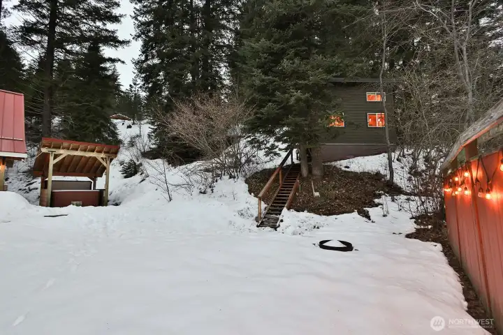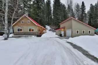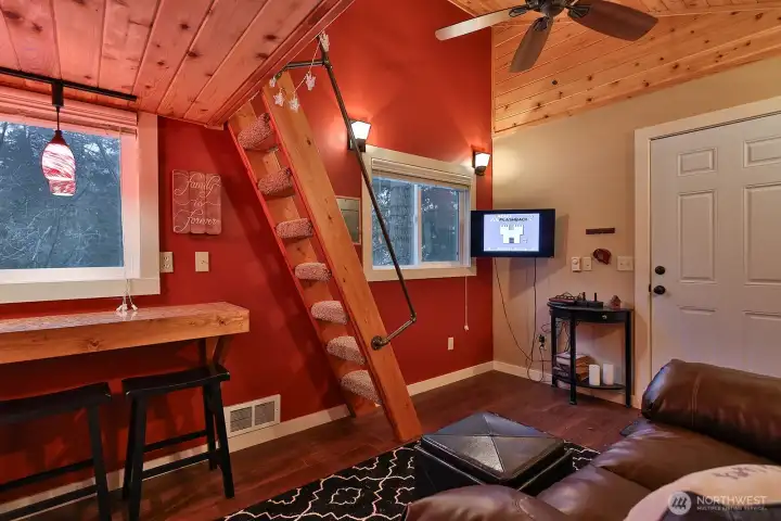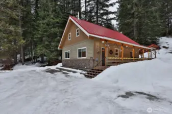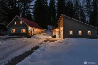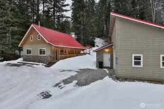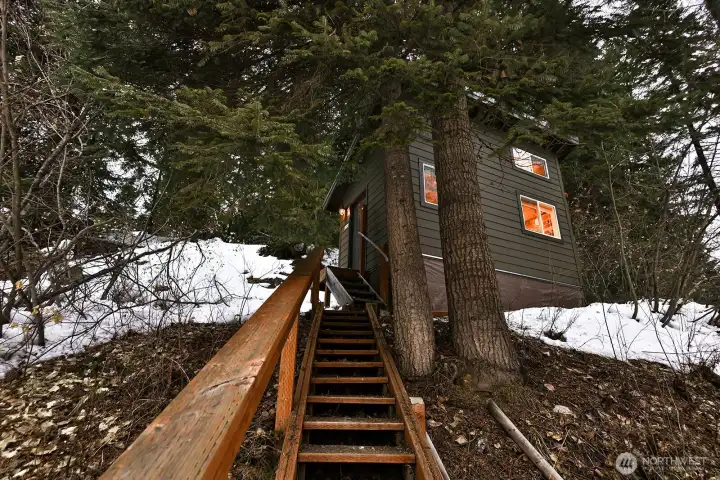 Welcome to Bluebird Corner, a charming mountain cabin with a transferable short-term rental permit for up to six guests—offering exceptional flexibility for personal enjoyment and built-in income potential. Step inside to warm wood floors, expansive pine ceilings, and an open, light-filled living space anchored by a freestanding wood stove. The kitchen is well-appointed with granite countertops, double wall ovens, and a generous workspace—perfect for everyday living or entertaining. The open dining area comfortably seats eight and flows seamlessly into the living room, creating a wonderful gathering space. The main level features two comfortable bedrooms with a full bath between them. An open staircase leads to a spacious loft with a queen and a double bed, a private bath, and flexible space ideal for a home office, reading nook, or play area. Outdoor living is just as appealing, with a covered, private hot tub and a generous yard for relaxing, playing, or gardening. Adding to the property’s versatility is a detached garage with bonus space and an adorable bunkroom—perfect for overflow guests, hobbies, or a private retreat. Year-round recreation is right at your doorstep, with access to nearby trails and snowmobiling from the driveway. Both Bavarian Leavenworth and Stevens Pass are a scenic 30-minute drive, and the charming town of Plain is only minutes away. Make this your idyllic mountain retreat with rental income to boot!
