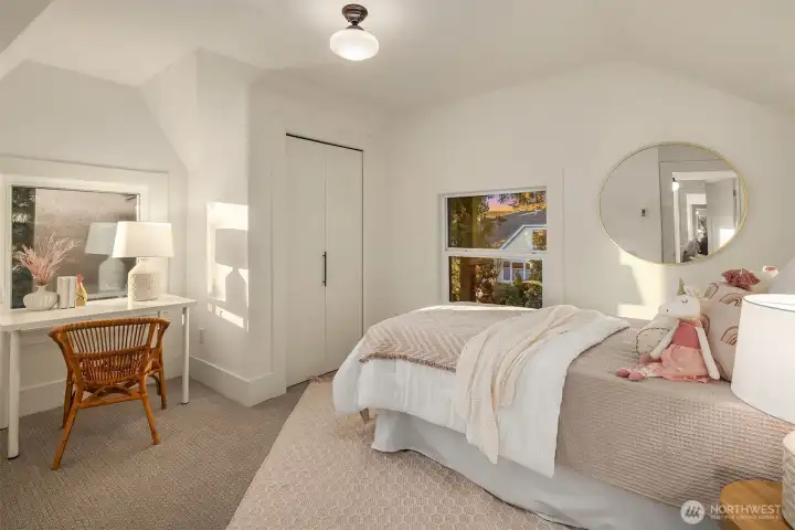 Just blocks from the fantastic scenery and recreation of Green Lake, plus the coffee shops & dining in Tangletown, this fully restored classic Seattle home blends charm with modern comforts. Relax on the covered front porch or entertain in the spacious living room with gas fireplace and original millwork. Renovated kitchen features custom cabinetry, a gas range and contemporary appliances. Large guest powder room on the main level - great for hosting. Upstairs you'll find a primary suite with private deck and second bedroom including its own en suite. The finished lower level offers a cozy family room, third bedroom, full bath & laundry. Mini splits provide year-round comfort. Newly constructed EV-ready detached garage accessed off the alley. Enjoy classic charm with modern amenities in one of Seattleās most coveted neighborhoods!