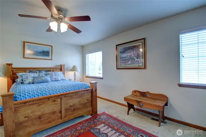 Discover this thoughtfully designed, one-owner custom home, now available for the first time. Seamlessly blending comfort, craftsmanship, and breathtaking natural beauty, this 4-bedroom, 2.5-bath residence offers generous living spaces and exceptional versatility. The main-level primary suite serves as a private retreat, complete with a luxurious 5-piece ensuite bathroom and walk-in closet. An open-concept gourmet kitchen flows effortlessly into the inviting living area, where a cozy fireplace anchors the space and oversized windows frame stunning, unobstructed views of Mt. Baker—a panorama that shifts beautifully with the seasons. Gleaming hardwood floors grace the principal living areas, complemented by an elegant tiled entry. Upstairs, a spacious loft provides flexible bonus space ideal for a home office, media room, play area, or guest quarters.Step outside to a meticulously landscaped, fully fenced backyard oasis and enjoy the luxury of covered decks both front and rear—perfect for morning coffee with mountain vistas. Adding to the property's enduring appeal, the adjacent lot will remain undeveloped, permanently preserving your sweeping views. Oversized two-car garage with abundant storage. Full House Generator for the rare times power is out for added comfort. Properties like this are seldom available—don't miss the opportunity to make it yours.