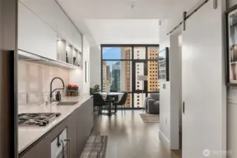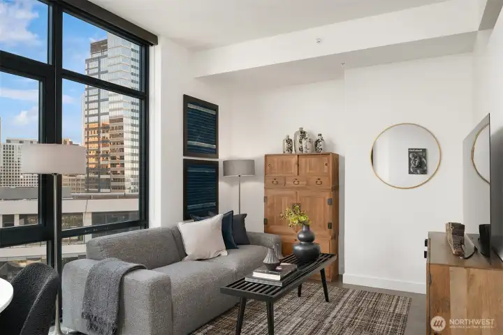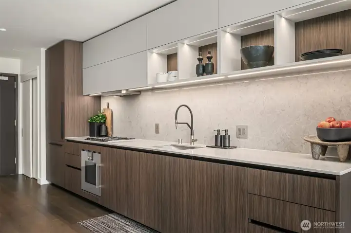 Nestled in the heart of downtown Bellevue, this brand new luxury condo offers a refined open one-bedroom, one-bath retreat crafted for modern living. Smart and functional, the residence boasts top of the line fixtures from world renowned brands, blending elegance with practicality. Thoughtfully crafted interiors feature harmonious tones, clean lines and discreet textures, creating a balanced environment that nurtures well-being. Beyond your private sanctuary, enjoy amenities including a fitness room, stylish lounge and dog run. The building's modern lobby welcomes you with dramatic lighting, a living wall and a striking fireplace - signaling your arrival at a place where luxury and wellness converge seamlessly .