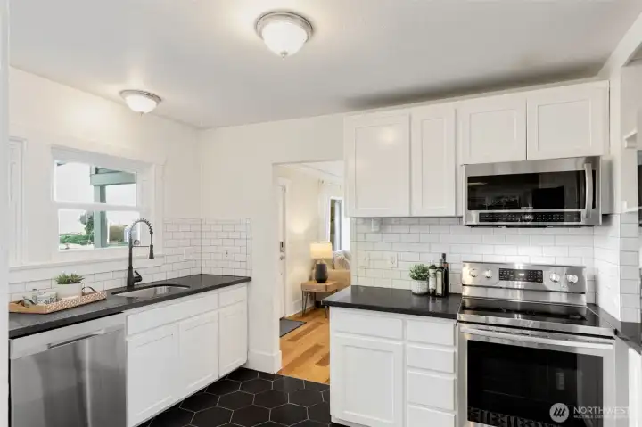 Sweet and soulful, this refreshed 1920s West Seattle bungalow is a beaut! The spacious kitchen has upgraded appliances, new ceramic tile floors + backsplash and offers ample storage and a convenient mudroom. A gas stove anchors the living room and oversized windows provide great natural light. Modern updates include new Hardie siding, bamboo flooring, and updated electrical service and panel. Outdoor space is a standout with mature evergreens, fully fenced back yard, a fire pit area plus a new patio and hot tub for star gazing at the end of the day. Off-street alley parking and abundant basement storage. Just a short stroll (5–10 min) to neighborhood favorites like The Westy, Locöl, Real Fine Coffee, the Southwest Pool, express transit, and more. Warm, welcoming, and wonderfully West Seattle!