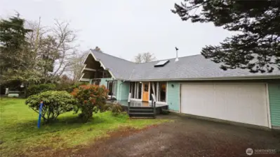 A coastal retreat that lives as big as the sky. This peninsula home blends comfort and coastal charm with a soaring great room, west-facing light, a woodstove and a west facing deck. Main-floor suite plus an upstairs suite with skylights and a large versatile bunkroom/office. Kitchen with stainless appliances, walk-in pantry, custom tile backsplash, quartz countertops, and pass-through for easy gatherings. Two-stall garage plus L-shaped workshop. Double lot offers ample space for RVs, firepit, and play. The fully fenced back yard offers a great space for pets. Easy walk to the beach.