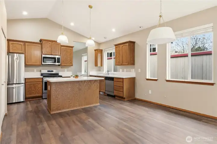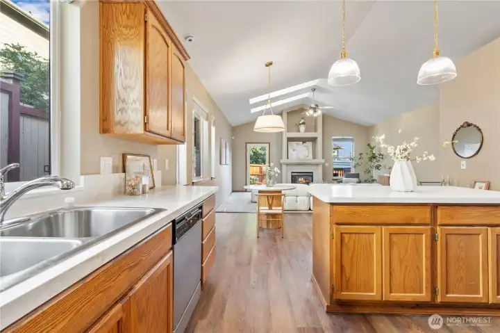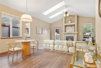 Rare and sought-after one-story living, this bright and beautifully updated home sits on a sunny, flat lot in a quiet Cul-De-Sac neighborhood. Spacious formal living with bay windows flows into a formal dining room and an open kitchen/family room with vaulted 11-ft ceilings and skylights. The chef’s kitchen boasts a new refrigerator, newer gas range, updated countertops and lighting. Generously sized rooms throughout, including a grand primary suite with luxurious 5-piece bath and walk-in closet. Recent updates: LVP flooring, new garage door, new washer, and upgraded fencing. Ready to move in! Award-winning schools and a prime location close to amenities complete this exceptional offering—everything you need in one perfect home.