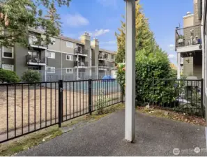 Welcome to Village by the Lake, a well-maintained community in Everett. Ground-floor Unit F103 offers 2 bedrooms and 2 bathrooms, a wood-burning fireplace, brand new washer and dryer and a private patio with a view of the pool. The kitchen features freshly painted cabinets, providing a refreshed look. Community amenities include a clubhouse, tennis court, pool, and walking trails around Beverley Lake. Conveniently located near schools, shopping, restaurants, Boeing, and with easy access to I-5. Reserved parking is included, along with ample guest parking.