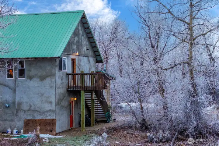 Discover a living work of art where history and high-end craftsmanship converge on the banks of Naneum Creek.This 2,036-square-foot sanctuary offers unparalleled privacy and is nestled on a private stretch of the shrub-steppe, with Naneum Creek flowing on both sides of the property. The interior is a masterclass with a story in every detail & reclaimed elegance, featuring 1890s beams from the Ellensburg Elks Lodge and floors salvaged from a 1900s local car dealership. The open kitchen features a 4 burner Viking range and a Saba industrial glass refrigerator, while the main bathroom transports you to another era with an 18th-century French copper bathtub, German hand-stenciled tile, and Carrera marble. Sustainability and tradition meet in the outdoor spaces, sprawling shop includes an open-concept studio apartment perfect for guests or creative pursuits. For the hobbyist, a covered garage features a dedicated oil change pit and spacious insulated workshop w/ample parking. Outdoor living is redefined by a 12x12 cedar-lined wood-fire sauna, large patio w/pergola, a chicken coop, and a greenhouse built with 1900s farmhouse doors and a vintage stove. Experience a rare blend of historical soul and rugged independence in a private creek-side setting on 2 tax parcels.