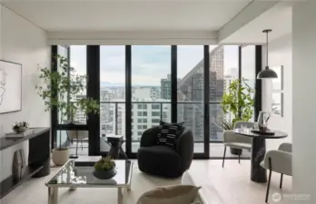 First Light, designed by architect James KM Cheng and glass artist John Hogan is Westbank’s latest residential tower in Downtown Seattle. This Northwest Studio Home offers an open, efficient layout, with a spacious balcony, floor-to-ceiling, triple-paned windows allow for spectacular Belltown city views. Each home features custom-designed interiors by the architect and includes custom B&B Italia cabinetry, light finishes with contrasting details, Kohler fixtures, Miele appliances, keyless entry and hardwoods throughout. Amenities include a 47th floor 25-meter rooftop sky pool & jacuzzies, a rooftop garden, fitness & wellness center, bike lounge, pet play area & spa, and residents lounge.