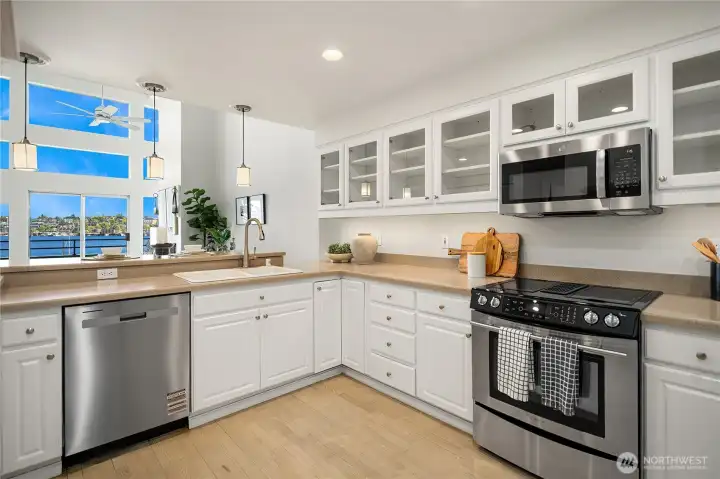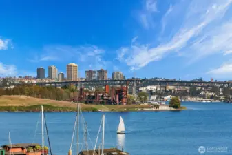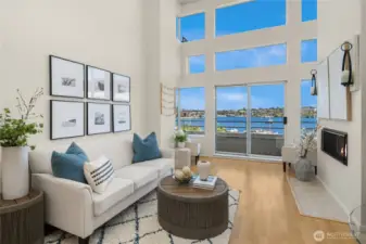 Unbelievable Lake Union & Cascade mountains views, Elegant 2-level condo with 2 primary suites, vaulted ceilings, 2-story windows pour in lots of natural light into all spaces. Huge open kitchen & living areas are ideal for entertaining or cozy up to the gas fireplace. Main level has an office/den & large bonus space. Balconies on both levels! Walking distance to SLU waterfront, Fremont, Amazon, Google, Meta offices! Easy access to I-5 & 99. This unit comes with 1 secured parking spot & a storage unit.