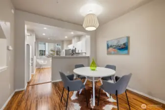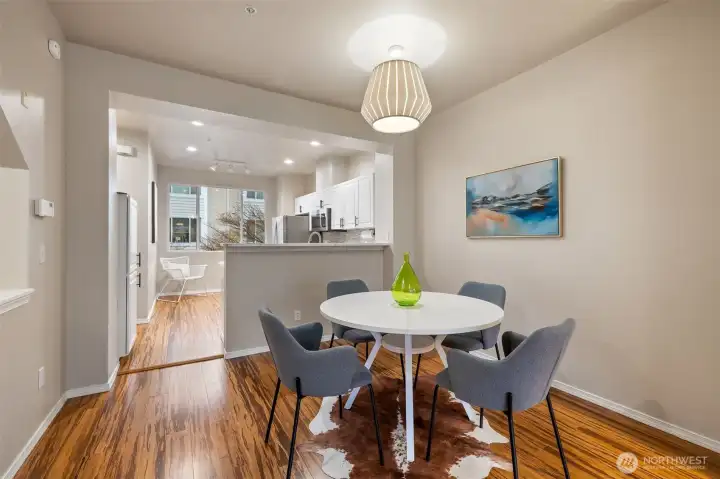 Presenting a move-in ready renovated 3-level townhouse in prime location. Enter on the ground level with a 2-car tandem garage & ample storage. The main level offers an open layout designed for modern living. Rich bamboo floors & gas fireplace create a warm, inviting feel throughout. The kitchen has been refreshed with brand new quartz countertops and stainless-steel appliances, opening seamlessly to the main living and dining areas—perfect for everyday living and entertaining. Sliding glass doors open to a deck overlooking common space. Powder room up the steps leading to the upper level where both baths have been updated with custom vanities & fresh paint adding a polished, contemporary touch. The spacious primary suite includes its own private bath, while the second bedroom offers flexibility for guests or a home office. Stackable full-size washer & dryer. Common spaces include playground, clubhouse with exercise room & sauna, guest parking with EV charging. South Bothell location with easy access to I-405 and nearby destinations such as Kirkland, Totem Lake, Juanita, and Woodinville—home to some of the area’s best restaurants, shops, and amenities. Pre-inspection & HOA docs available.